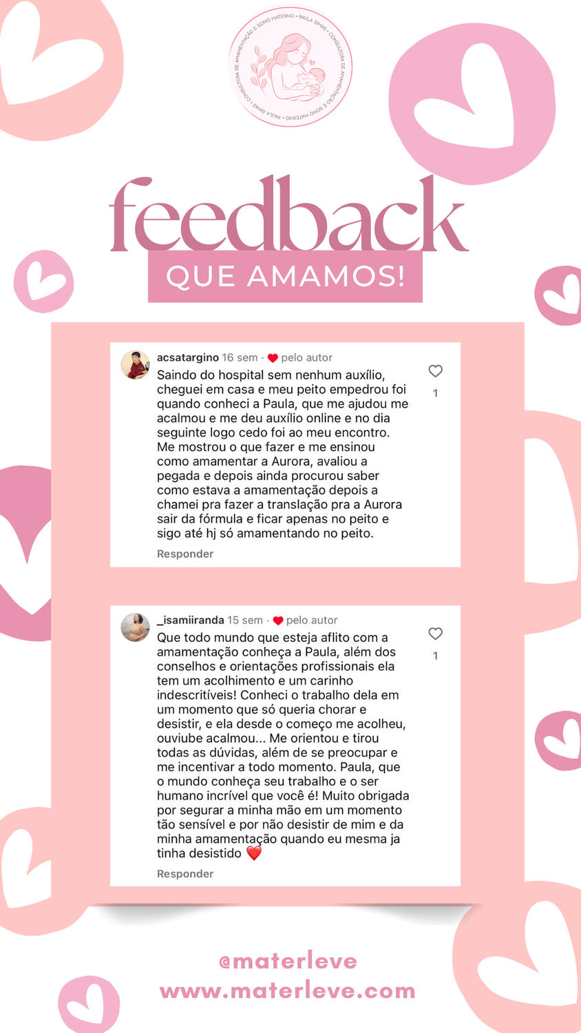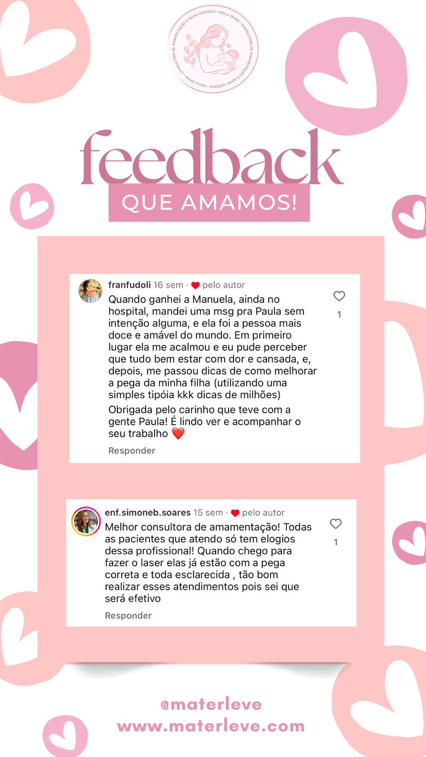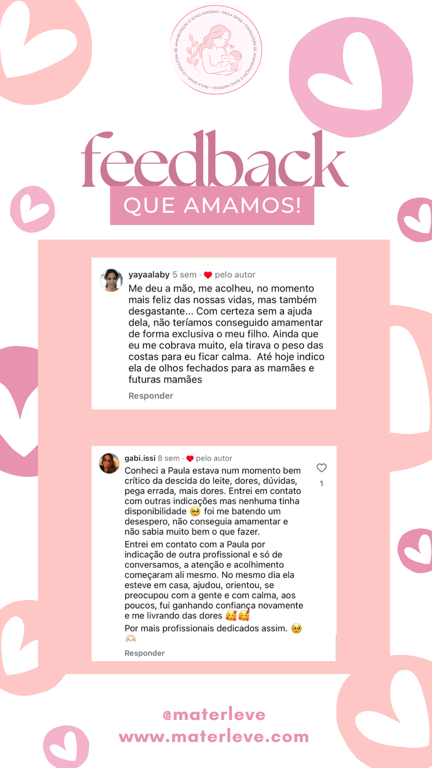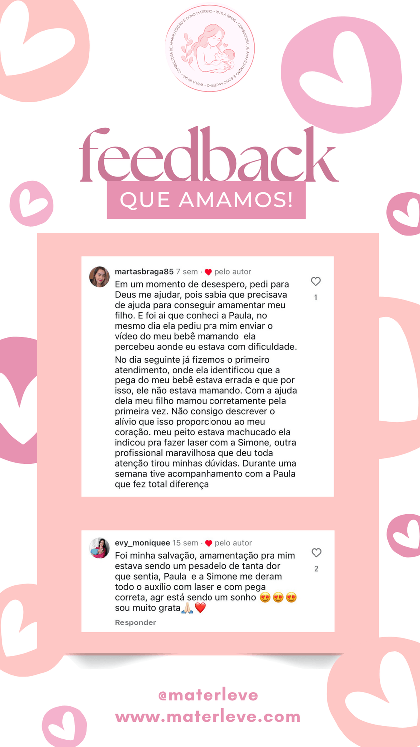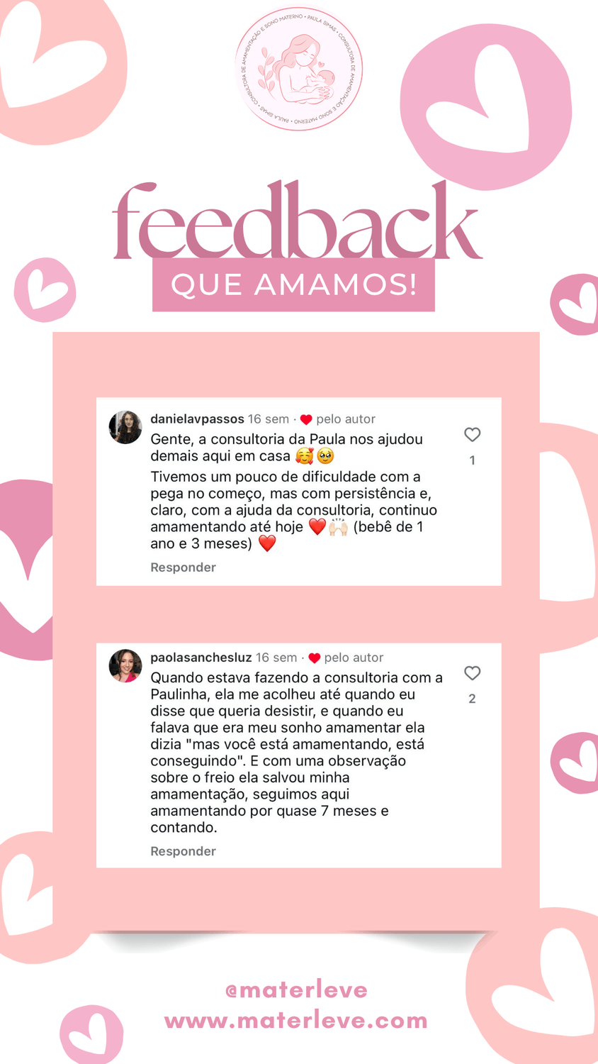 Oferecemos orientação desde o início da amamentação, ajustes em cada fase do desenvolvimento do bebê, suporte para dificuldades específicas e desmame gentil. Com um olhar personalizado e acolhedor, estamos ao seu lado para transformar a amamentação em uma experiência leve e saudável para todos.